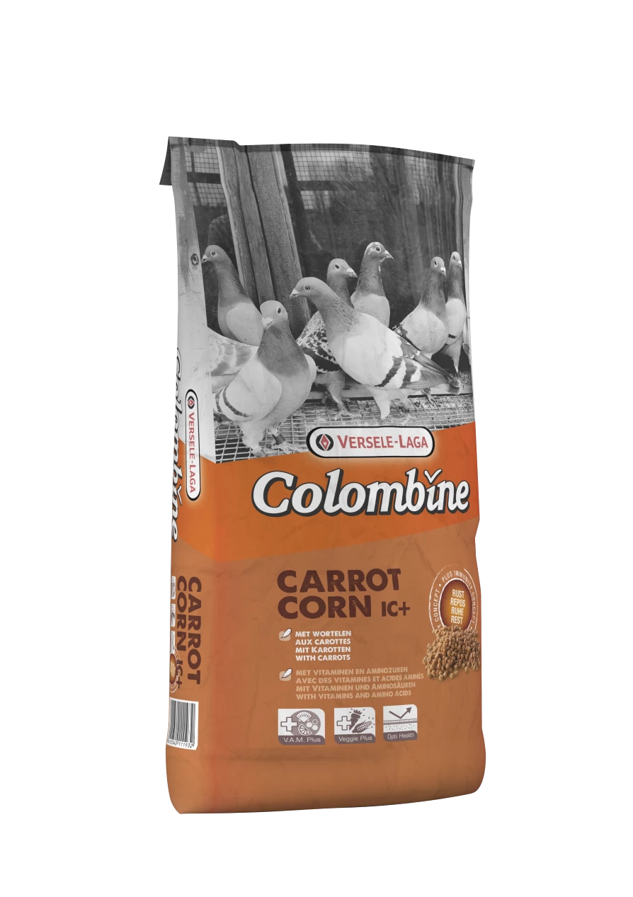 Colombine Carrot Corn I.C.+ ist ein leicht verdauliches, extrudiertes (vorgebackenes) Taubenkörnchen, das reich an Karotten ist und als Ergänzung zu der Körnermischung gegeben werden kann.